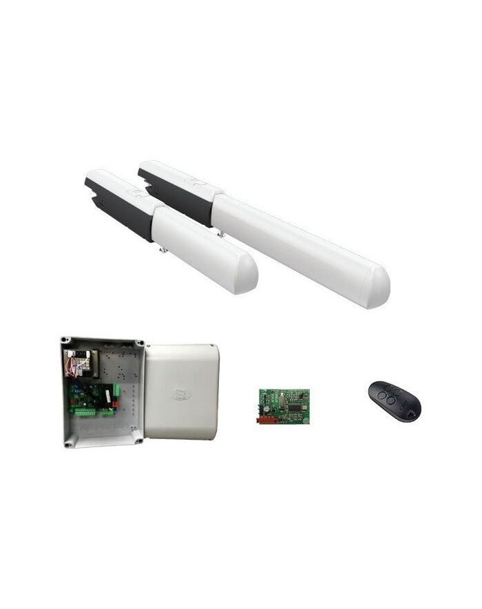 Комплект автоматики для двухстворчатых распашных ворот CAME ATI3000A combo KIT (A3000A KIT) на основе привода А3000А (блок управления ZF1N, радиоуправление) массой до 800 кг. или до 3 м., интенсивность 50%, класс защиты IP44; диапазон рабочих температур от -20°С до +55°С; напряжение питания 230В; тип привода линейный электромеханический.